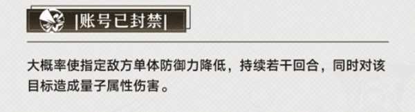 终结技:银狼的大招有100%的基础概率给予目标单体减防45%的能力,增伤和怪物等级以及角色等级有关,数值在30%左右,并且这个又是个独立乘区,和前面的增幅乘起来之后,提升数值会变成96.6%,相当于翻倍了,在单体爆发队伍中表现地非常强势。