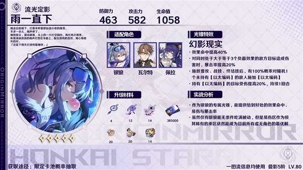 虚无角色通用光锥,对银狼来说可以进一步地提升自己的辅助能力,但如果是0命的话对于效果命中和充能词条上则需要更多的词条了。