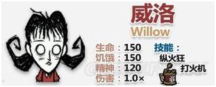 Willow的本意是柳木,柳木在木材中是最为易燃的几种之一。用拆字法拆开薇洛的名字,就是will+low,直译是“意志低”,贴合了以前版本火女SAN值过低时,会不受控制的乱烧东西。