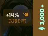 【武器】:【500G】→6%武器伤害、【1250G】→10%武器伤害、【3000+G】→14%武器伤害、【6300+G】→18%武器伤害;