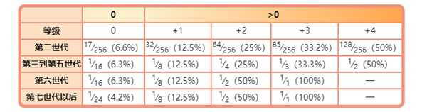 与能力变化类似,击中要害率也有等级,最早出现在第二世代。击中要害率等级只能提升,不能降低。