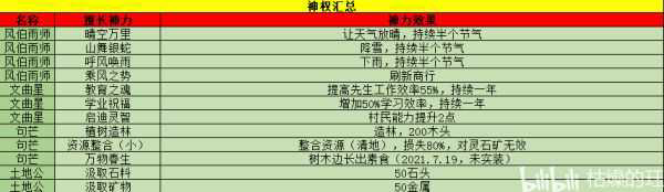 《天神镇》是一款模拟经营类游戏,其中神权能够提供各种神力效果,不少玩家想要了解全部神权的特点,下面请看“枯燥的珏”分享的《天神镇》神权神力效果一览,希望能够帮助大家。
