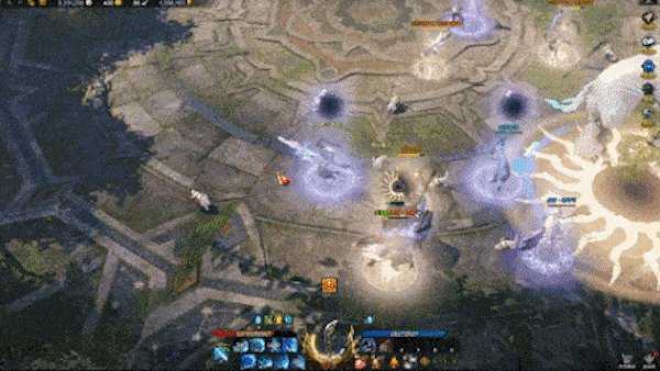 当“阿尔古斯”跃回场景最中间,并低头召唤日月法阵时为“小披萨”,它将以自身为圆心,召唤会进行转换的小型扇形区域,第一轮时为闪烁轮次,用于提醒冒险家接下来的安全区域,总共闪烁5次;第二轮为判定轮次,需要冒险家们记下第一轮的安全区域并持续跟随安全区移动,总共判定5次。由于“小披萨”前4次伤害判定较低,最后1次伤害判定较高,记忆力好的冒险家可直接跟随安全区进行移动,而没有记住的冒险家,可考虑直接在安全区的重点位置,沟通辅助职业开启减伤技能、觉醒,或使用“凝时药水”来进行规避。