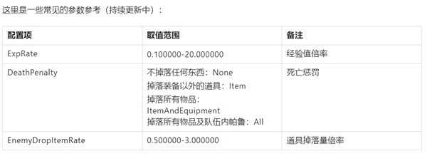 如果你想修改默认的死亡掉落规则、调整掉落倍率等游戏配置的话,可以这么做: