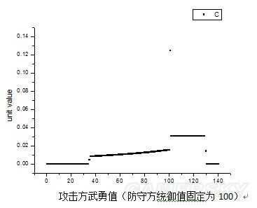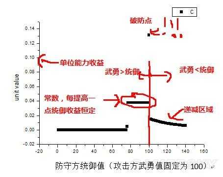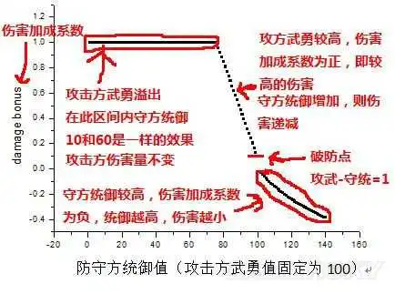 6. 当攻武=守统时,攻方额外增加的一点武勇会带来最大的收益,这个收益可称为破防收益。此时攻武-守统=1,可称之为破防点。同理,攻武=守统时,额外对守方的一点统御的减少会造成最大的损失,或负收益。