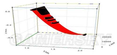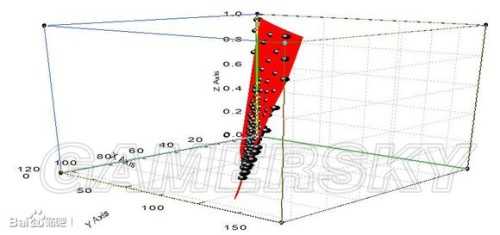 X轴为武统比,Y轴总兵力值,Z轴伤害减伤系数,红色曲面为拟合曲线,黑点为数据点