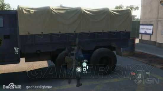 翻墙进入后向左走,从两个楼的间隙中看到卡车,注意一定要匍匐接近,不然鬼出来了分分钟被发现