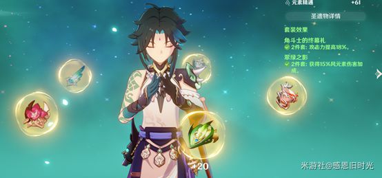 然后关于圣遗物,套装效果还是推荐 风2+角斗2,套装容易毕业,词条可选择性也比较多,而且综合测试来看,伤害也是最高的。