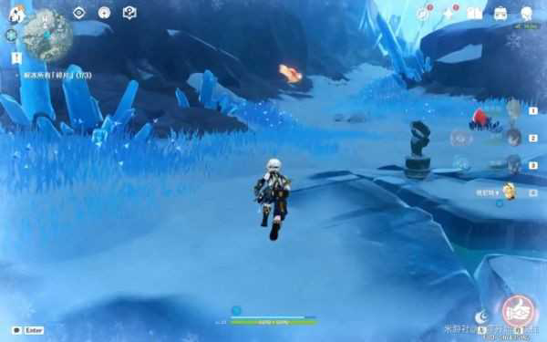 进入洞窟后去往洞底找到被冰封的碎片,此时碎片被光幕包围,需要先完成挑战任务才能解封光幕。做挑战任务之前需要先找到3个温暖仙灵,不然任务中容易被冻死,仙灵都在洞底,位置如图。