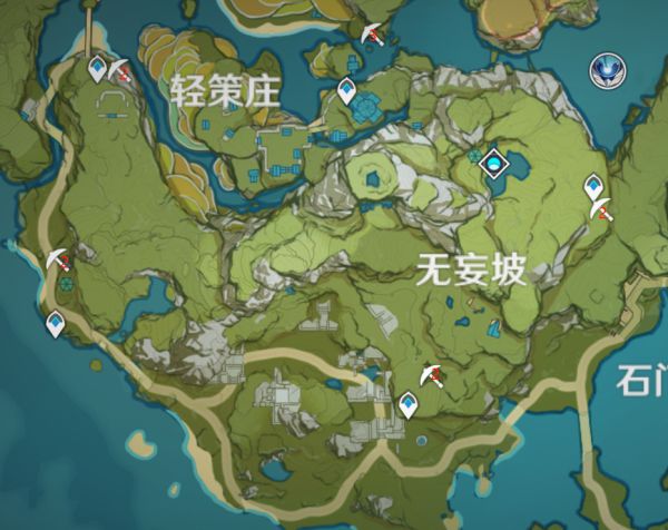 接下来就是离传送点最近也不用跑太多时间的地方,它位于轻策庄、无妄坡