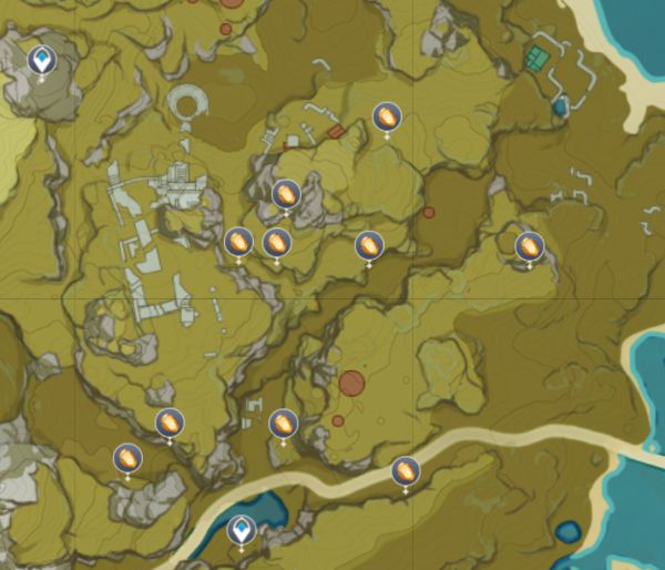 所以我总结了一下比较佛系的采集地点,大家没事的时候在传送点顺手采集石珀即可。