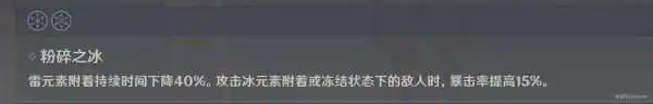 3个思路用双风双火这样的充能能力强的,饱和充能。当然双风双火中班尼特和琴可以清自身的debuff这算思路2,第3个思路就是双冰降低40%的雷附着同时还带来15的冰下暴击收益