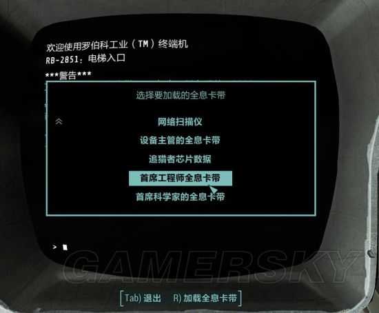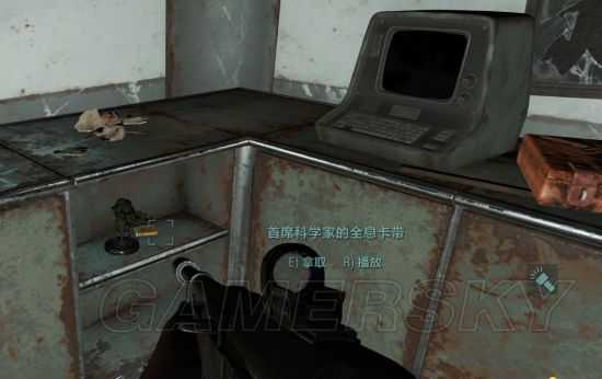 2.按照推图顺序,第一个卡带是“首席工程师的卡带(Head Engineer's holotape)”。位置在质量控制办公室的一个终端机旁边(终端机前红椅子上坐着一个骷髅)。