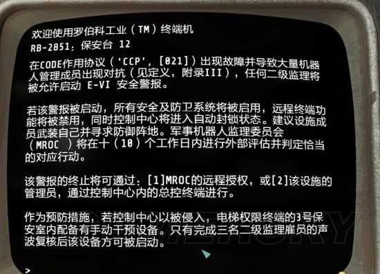 但用大师级黑客技能解锁后,会显示需要“手动授权”。这个房间另一端的保安终端有给出提示“需要三名二级管理人员声波复核才能启动”。