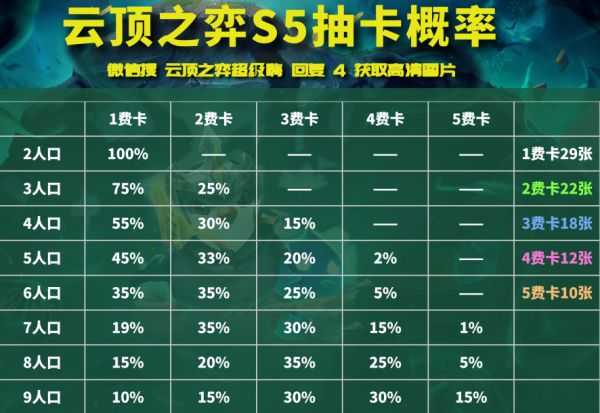 3-1直接开始追3星丽桑卓是这里的关键,我们需要说明的一点是,在4人口1星卡牌有55%的概率出1费卡,而5人口有45%这似乎看起来没有多大的区别。但是如果同时追2张1费卡的话,还是有很大的差距的。