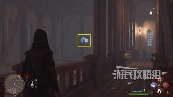 从传送点出来之后,走楼梯上去,右拐再右拐,使用【原形立现】找到。