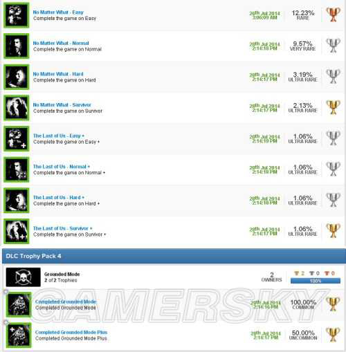 3. 将“生存者+”通关会解开最多7个奖杯,比如说你一周目解开了“简单”,那么通关“生存者+”会解开“简单+”,“普通”,“普通+”,“困难”,“困难+”,“生存者”!至于为何没通生存者就能拿到“生存者”奖杯,估计是游戏的BUG吧。。。(通关后请耐心观看STAFF名单,假如直接跳过可能会出现奖杯BUG)假如通关后没有解开高难度奖杯,就选章节看看哪个章节的生存者难度没有通,选章节通掉然后再选最后一章走完流程看完STAFF名单就会跳杯了!