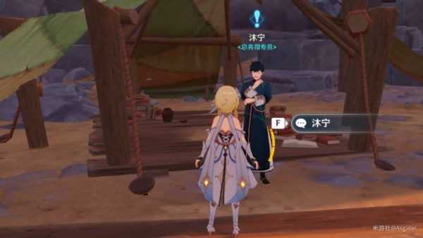 在层岩巨渊东侧的锚点处,按照下图标记找到NPC沐宁,然后对话接取任务,然后寻找老石并交付于他即可(要3块)