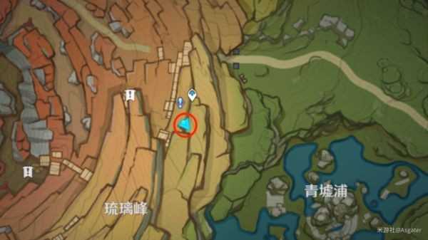 第6处推荐在拾取第5处老石之后按照图中的标记去获取,也可以从天工峡的东南方向通过跳台来到此处