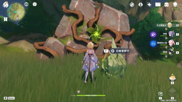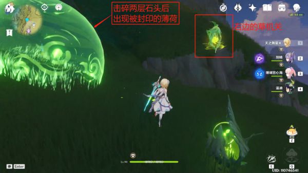 拾取草种子使用弓箭角色蓄力攻击左右两边的草机关。