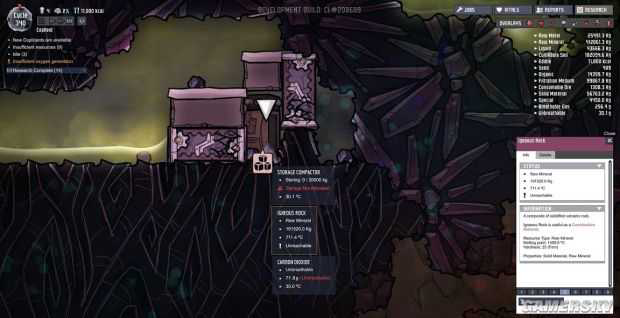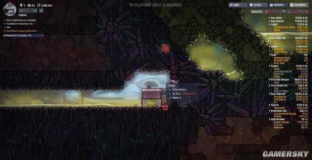 为了获取加热水的热源要先挖到地下,找到一些熔岩凝固的火成岩,尽可能多的收集这些材料。后期复制人的奔跑速度大概可以+400%,所以直线移动是飞一般的速度,尽可能挖掘直线通道,在工地制氧即可。