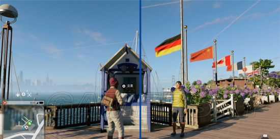 那么问题也就随之而来了,《看门狗2》的画面表现确实不错,可是PS4PRO能够让这个世界变的更加美好吗?正所谓耳听为虚眼见为实,相信许多观众已经发现现在的这个画面是由左右两个部分所组成的,那么你们能够分辨的出来哪一边是PS4,哪一边是PS4PRO吗?我给你们3秒钟的思考时间。