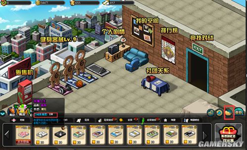 购买完毕后玩家可以右下方的保存标签进行装扮的保存。这里需要提醒大家一下,空间的美观度越高,贩售机所获得的经验就越多,健身房升级也需要空间美观度。