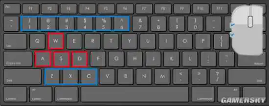 我们在键盘的默认移动“W,A,S,D”上以手指能最快最舒适按到的也是最近的几个键去分配给建筑放置比如“Q,E,Z,C,TAB”,以及鼠标的两个侧键,侧键是右手很轻松按到且互不干扰的按键。你们可以按照自己的想法选择其中四个按键去设置四种建筑放置按键。