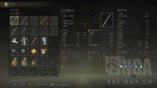 装备(第一行武器均未使用,两把法杖均为+9):
