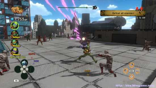 磁力运球(武器的球体),需要两只龟出现在球体附近,两者释放出磁力将球抬到空中,此时两只乌龟一同朝目的地进发,只要三方距离不太远,那么球体就不会坠落,这种运送挑战基本没有敌人骚扰,但天空会出现落雷,一旦被落雷击中或不慎令球体坠落,任务就会失败。