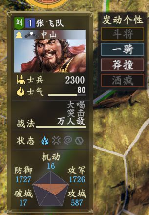 张飞吃了张家4个人+关羽+诸葛亮+刘备+赵云=8个亲爱加成,然后关羽神将+30%攻防。