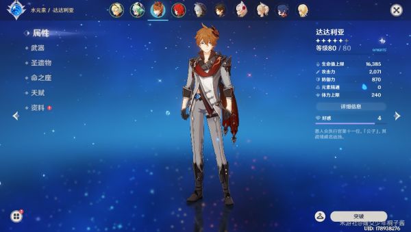 今天尝试着把最后一关打了,一开始带奶盾实在没法打,就试了下聚怪(还好我的砂糖能聚怪),先上一下自己的面板,其中砂糖一命,其他均0命,没有公子可用其他挂水挂冰角色。