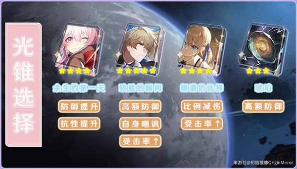 光锥【朗道的选择】可以提升装备者的受击率,并为装备者提供一定比例的减伤效果,可以让三月帮队友承担更多伤害。