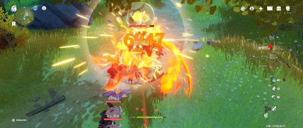 同样是第一段E打火斧人,伤害变成了6947。(这里不考虑阿贝多花爆炸的伤害,大家懂得都懂)