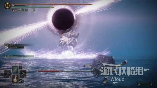 这招的攻击范围是从光波的落点到落点前方的一大片区域都会受到伤害,加上两道光波会绕着球旋转一圈,我们需要趁机爬到光波与梅蒂尔中间的位置躲避伤害。
