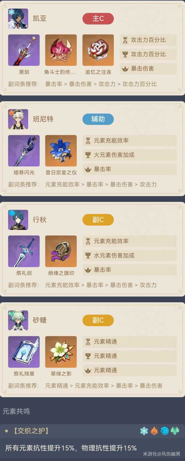 《原神》中的凯亚是游戏初始便能获得的一名冰属性角色。下面请看由“风伤幽冥”带来的《原神》2.5版凯亚主C配队分享,一起来看看吧。