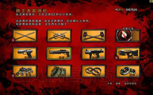 手枪,这是主角自带的远程武器,这武器升级方案是均衡分配,每个功能都升级1到两点即可,也不要太多的点,留给其他的武器。前期作为主要攻击武器,到了后期用处不大,偶尔做为主武器弹药不够的时候临时救急用。