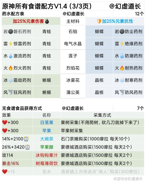 《原神》中每种料理都会为玩家带来不同的增益效果,而玩家要制作料理得到话需要先获得食谱,那么我们该在哪里获得食谱呢?现在为大家带来“幻虚道长”分享的《原神》1.4版本全食谱获取指南,希望对大家有所帮助。