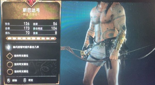 弓箭用斯巴达弓或者毒蛇弓,都重盾重甲了,还射什么箭?主要就需要弓箭的附带效果。斯巴达弓效果闪避后暂时提升暴击几率;毒蛇弓效果是每次击中敌人时提升暴击几率(共10层),比起慢慢叠,我个人比较倾向斯巴达弓,完美闪避后触发时缓,背后来一下暴击点燃斧头,再通过完美攻击上点燃。