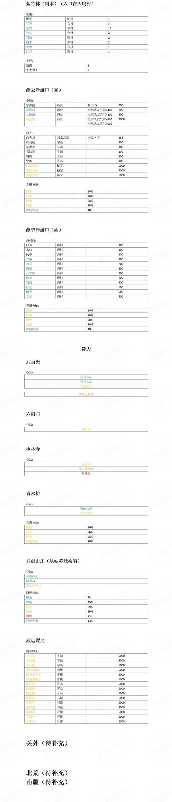 《逸剑风云决》有多个区域和大量的商人,各个区域玩家们可以获得哪些物品呢,想要了解的玩家请看下面“熊喵呜哇”带来的《逸剑风云决》全区域商店副本产出一览,希望能够帮助大家。