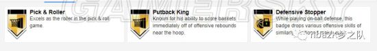他的三个金章分别是:补篮之王、追帽大师和精英篮板手,进一步提升了他的防守能力。