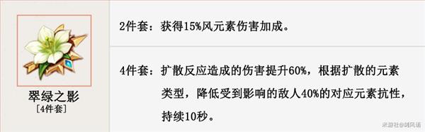 增加风元素伤害加成,提升扩散反应伤害,同时降低敌人元素抗性。非常契合。