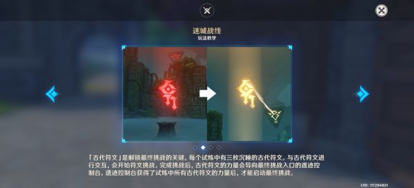 玩法主要是开启地图中的三个机关符文,再开启中央的最后挑战,击败里面的怪物之后就可以通关,在关卡中会随机刷新四个加成buff机关,击败机关内的怪物之后就能获得Buff,