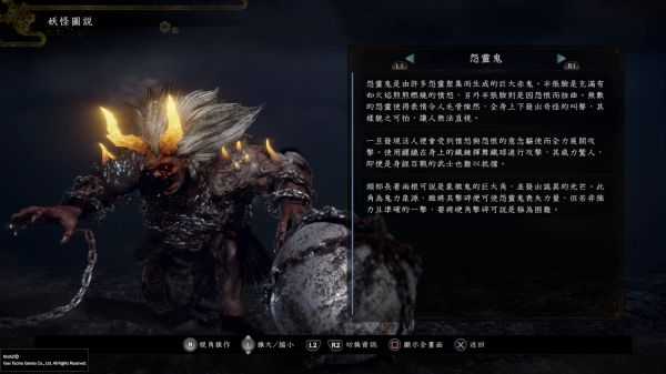 原本在一代,怨灵鬼是作为主线第一篇第一关的boss出场的,对初见仁王的萌新很有震慑效果,尤其是晃动的铁球,蹭一下直接绝境,但同时因为攻击速度不高,大部分攻击也都很好躲开,在掌握了要领以后就变成了很简单的boss,后期也是各种出场让玩家各种胖揍。