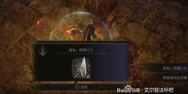 缺点是削韧,大大不如狮子斩,这点在打大型boss的时候非常明显,狮子斩3下就能打出失衡的boss,狩猎巨人要多补两下,总体而言这两个战灰没有明显的谁好谁坏,大家根据战斗的实际情况和手感进行选择。狩猎巨人的获取地点在雷亚卢卡地亚东门上面一点点。