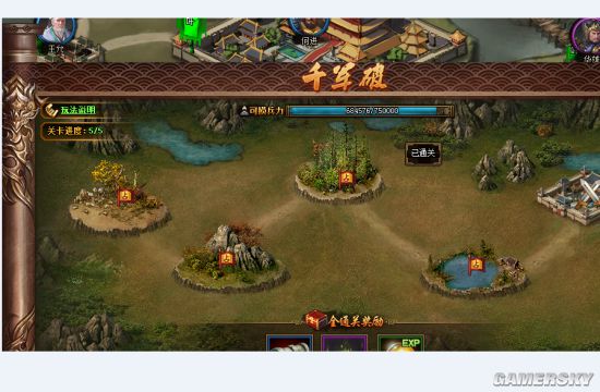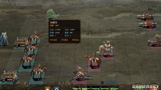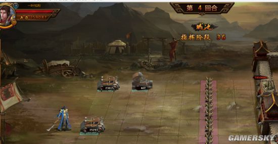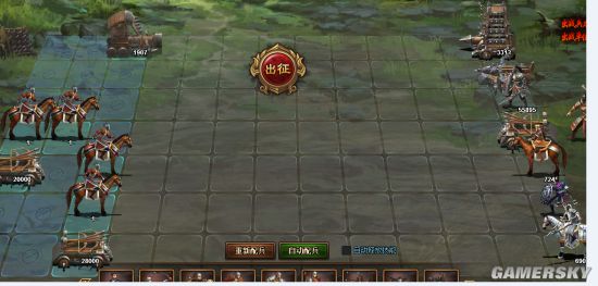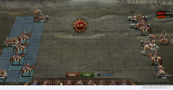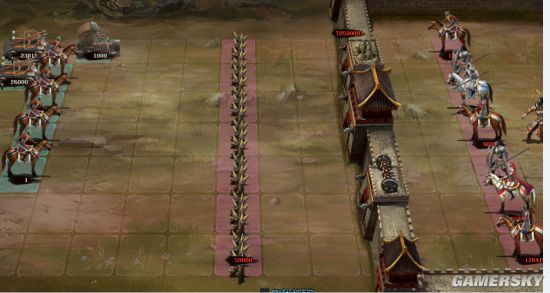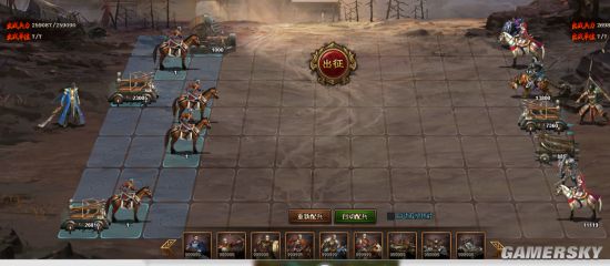 除非土豪,你2万8的三弓应该打不死弓骑兵,这时候上面的三弓拉下来,速度快的可以先手打对面三弓,这时候看下怒气,我轻骑兵用来干嘛的,1是用来挡伤害,2是用来加怒气,你要是感觉怒气不够,就把轻骑兵拉倒前面去打弓骑兵。接下来很简单,辕门射戟打三弓和投石车。第一关没有问题。完美!