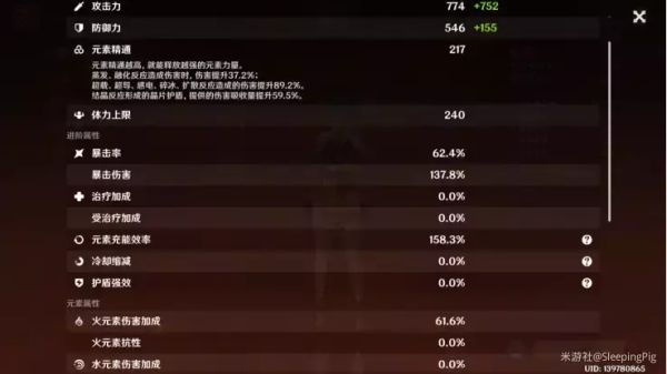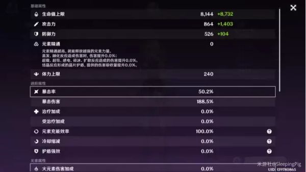 2、班尼特的充能和加成效果,因此最优先为充能速度(能多高多高),然后突破等级、武器等级、技能等级。