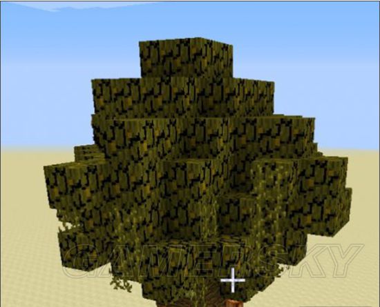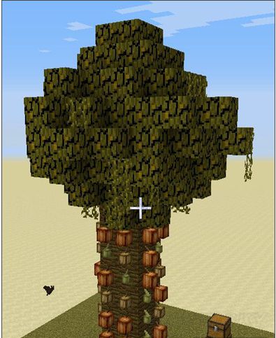 看上去是一棵普通的雨林木(树叶颜色不对是因为生物群系是沙漠……),上面长满了幸福感爆棚的可可豆,但是只要一按旁边的按钮……