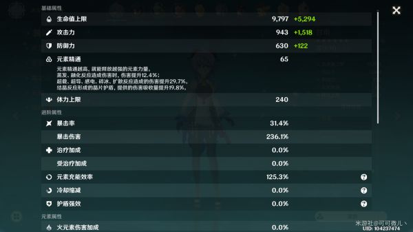 甘雨阿莫斯冰套本身实际面板(0BUFF)攻击力2461