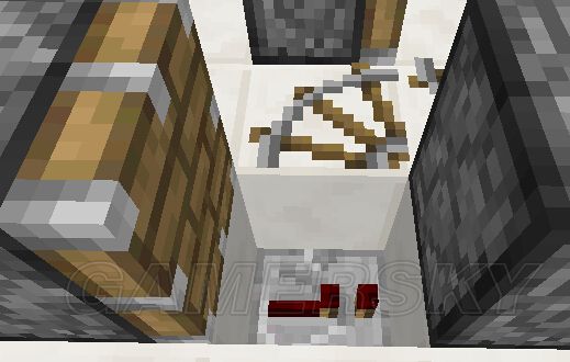 现在放上活塞(活塞的位置为铁轨转弯的方向所对的方块的前一格)